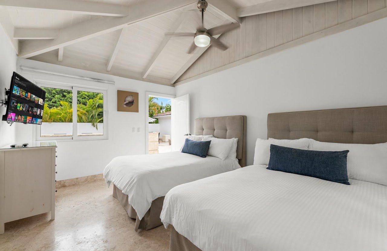 2. 1 King Bed (Note bedroom photo with wooden headboards with two queen beds is now a single king bed)