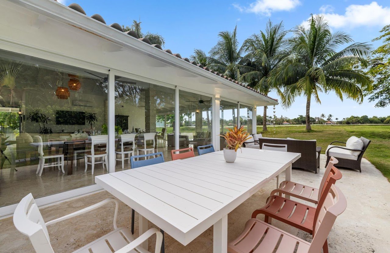 Seating and table for eating outside if you choose. ool on the private side deck area.
