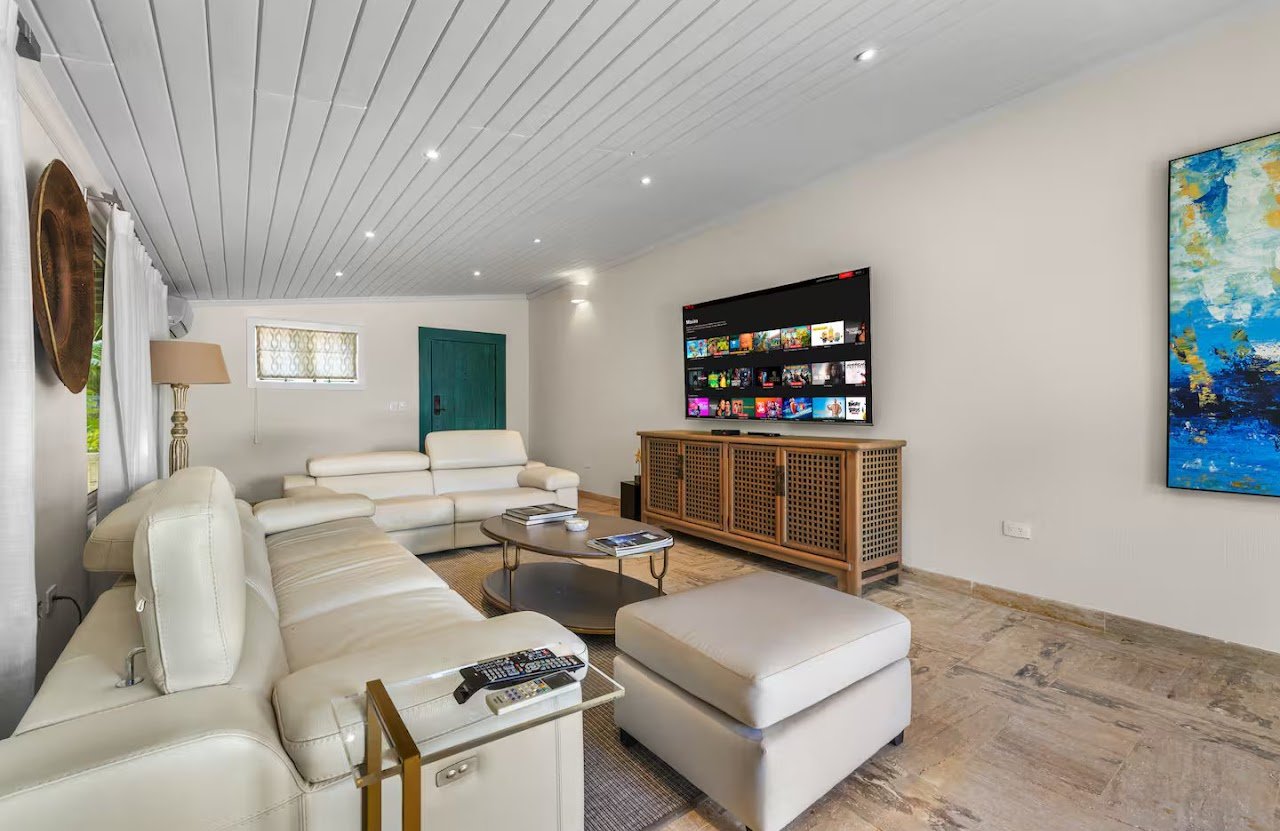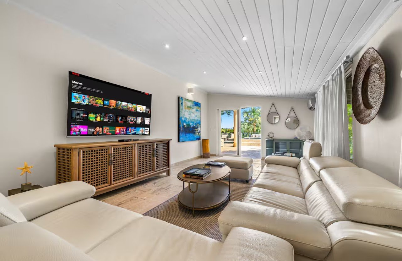 Inside you will find the main living room and a separate TV area.